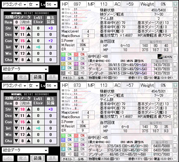 Lv53以前:CON型(+STR) ステ振り直し Lv54以降:STR型(+INT) =>現在の装備 【1st】 水エルフLv55+ |